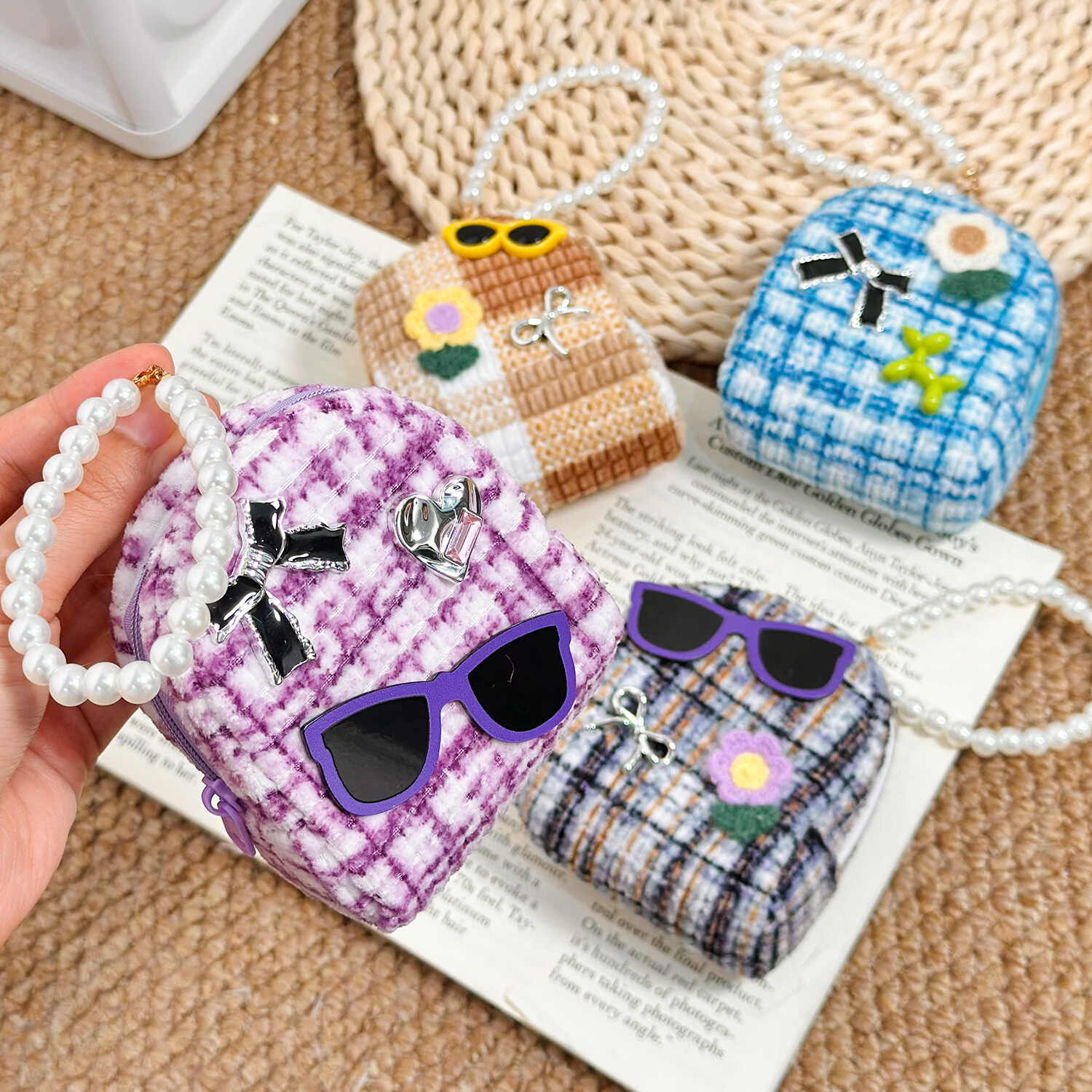Small fragrant style tweed plaid bag body, with imitation pearl hand chain, exquisite and cute shape, presenting a classic small fragrant style tone