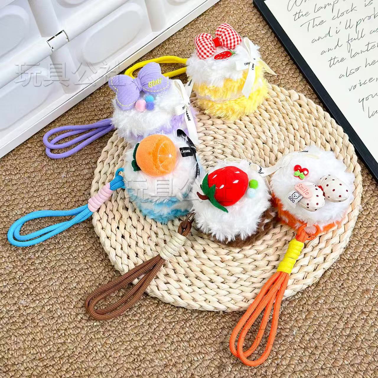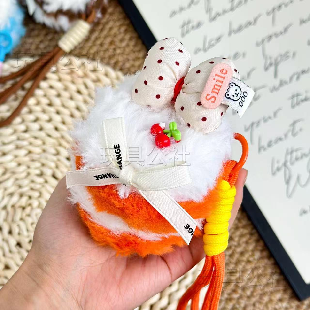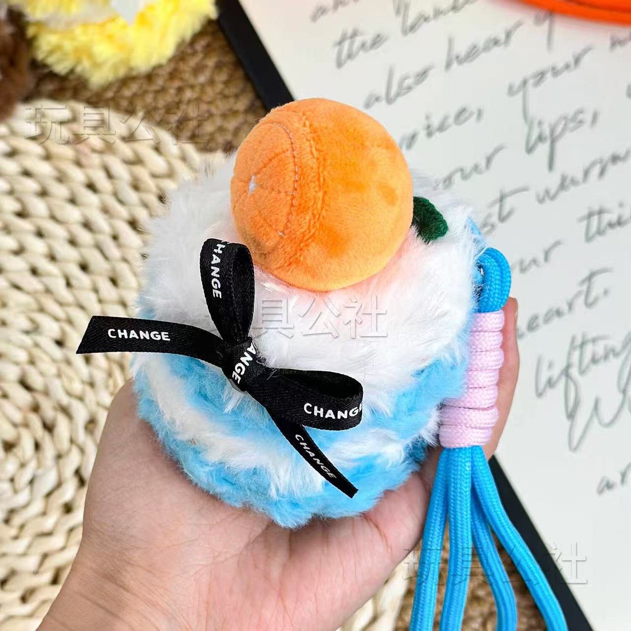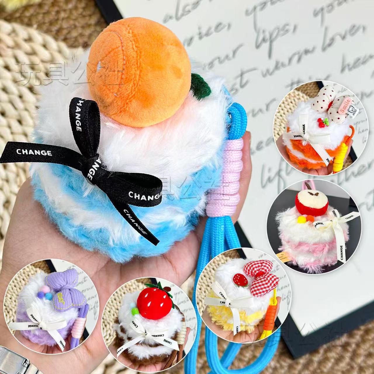 It features a round multi-layered fluffy cake design, with variants decorated by fruits like orange, strawberry and apple. Paired with a bow with “CHANGE” print and colorful lanyards, it comes in various styles, cute like a dessert charm.